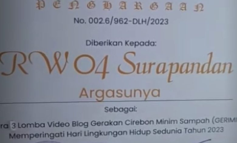 CIREBON – Pemberian gelar juara lomba video blog Gerakan Cirebon Minim Sampah (Gerimis) yang digelar Dinas Lingkungan Hidup (DLH) Kota Cirebon menuai protes dari peserta atau warga RW 04 Surapandan Kelurahan Argasunya Kecamatan Harjamukti Kota Cirebon.