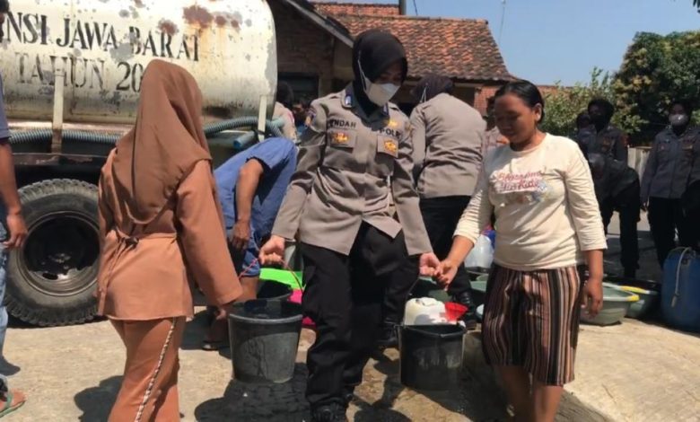 “Kami mendistribusikan air dari PDAM, ada dua tangki yang kami kirimkan untuk masyarakat Cipaku,” kata anggota Polwan Polres Majalengka Bripka Santi.