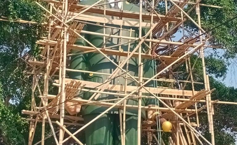 Patung tersebut kini masih ditutup kain dan bambu bekas pijakan pekerja baru dibuka. Rencanaya kain penutup baru akan dibuka, setelah dilakukan peresmian.(Tati)