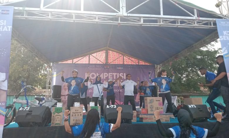 CIREBON-Bakal Calon Legislatif (Bacaleg) DPRD Provinsi Jawa Barat, dr Ratnawati MKKK menggelar kompetisi senam sehat yang diikuti oleh banyak warga Cirebon dan sekitarnya di Alun-alun Palimanan Kabupaten Cirebon, Minggu (20/10/2023).