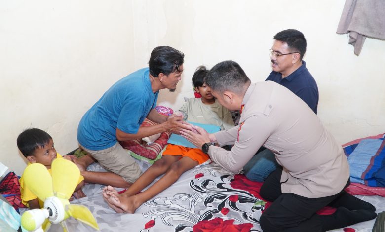 kacenews.id-CIREBON-Kapolres Cirebon Kota, AKBP Eko Iskandar, bersama Penjabat Sekretaris Daerah (Pj Sekda) Kota Cirebon, Iing Daiman, mengunjungi Dipay Dwitama, seorang anak yang menjadi korban gigitan ular berbisa, di kediamannya di Blok Sigendeng, RT 04 RW 03, Kelurahan Kesambi, Kota Cirebon.