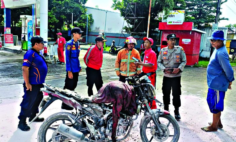 kacenews.id-CIREBON-Satu unit sepeda motor dengan nopol E 2460 NU yang dikendarai Amsor (60 tahun) warga Desa Tenjomaya Kecamatan Ciledug Kabupaten Cirebon, terbakar usai mengisi bahan bakar minyak (BBM) di SPBU Leweunggajah kecamatan setempat.