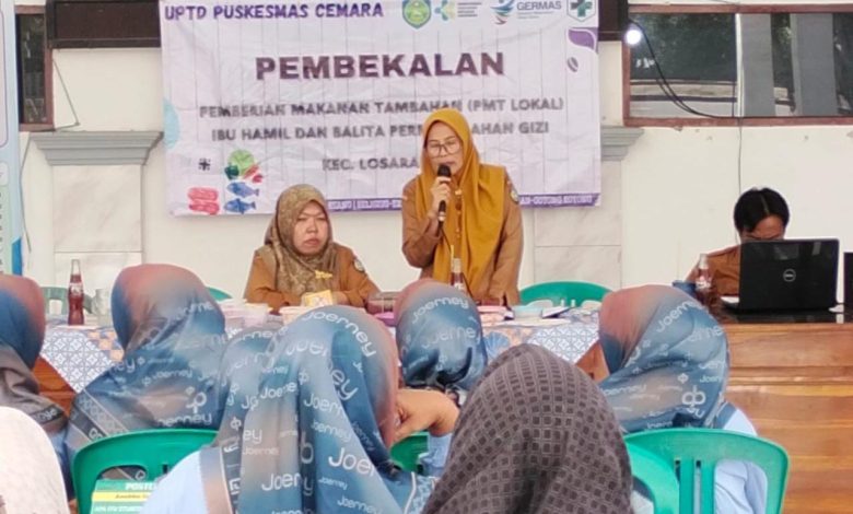 “Kegiatan PMT ini untuk memberikan tambahan makanan bagi bayi dan ibu hamil. Tujuannya adalah untuk menanggulangi stunting (kelainan tumbuh, Red),” Kepala Puskesmas Cemara, Kecamatan Losarang, Bidan Kasini.