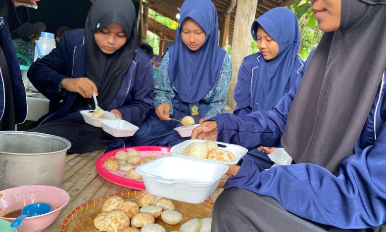 Sementara itu sejumlah anak sekolah Nampak antusias membuat apem disaksikan para orang tua mereka. Ketika pulang mereka membawa apem ke sekolah untuk dibagikan kepada teman – temannya.(Tat)