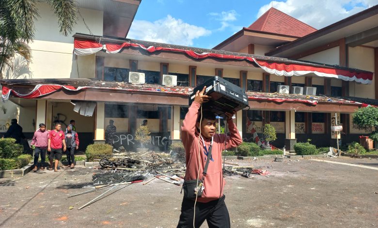 Sehingga massa membakar beberapa ruangan di kantor DPRD tersebut. Ditambah lagi para demontrasi melakukan penjarahan barang milik sekretariat DPRD.