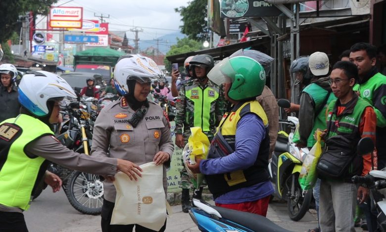 Di sepanjang jalur tersebut, Kapolresta Cirebon, Kombes Pol Sumarni bersama rombongan menyapa langsung masyarakat, pengemudi ojek online (ojol), serta ojek pangkalan, sekaligus membagikan paket sembako berupa beras 5 kg. Hingga total ada 50 paket sembako yang disalurkan dalam kegiatan ini.