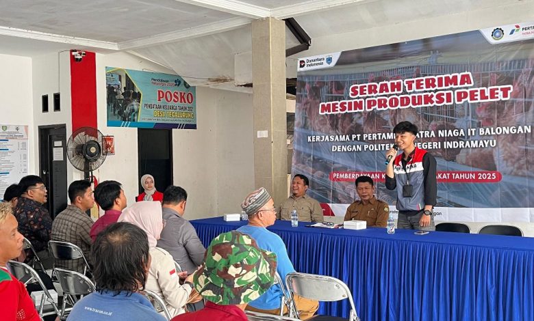 kacenews.id-INDRAMAYU-PT Pertamina Patra Niaga Regional Jawa Bagian Barat (JBB) melalui Integrated Terminal (IT) Balongan bekerja sama dengan Politeknik Negeri Indramayu menyerahkan bantuan mesin produksi pelet kepada Kelompok Tani Ragem Jaya Tegalurung.