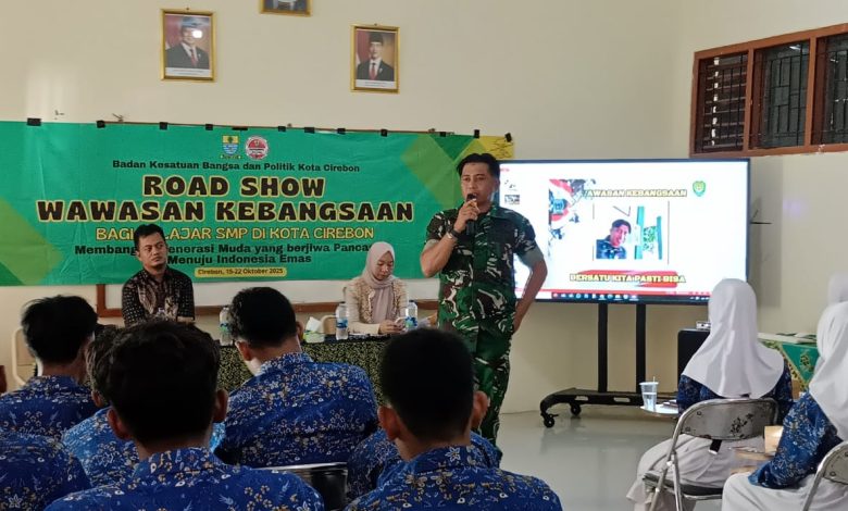 kacenews.id-CIREBON-Siswa SMPN 8 Cirebon ditumbuhkan semangat nasionalismenya dalam kegiatan Road Show Wawasan Kebangsaan di sekolah setempat, Jumat (17/10/2025).