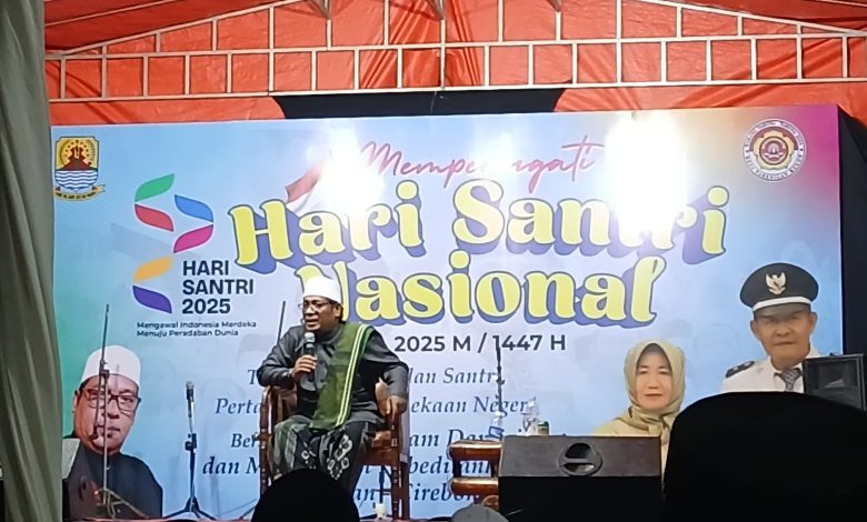 Sementara itu, Ketua Dewan Kemakmuran Masjid (DKM) Al-Mukaromah Desa Pabedilan Kulon, Kusnan, dalam sambutannya menjelaskan makna penting Hari Santri Nasional.