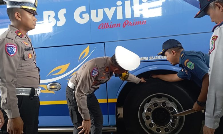 kacenews.id-MAJALENGKA-Satuan Lalu Lintas Polres Majalengka melakukan rampcheck atau pemeriksaan kelayakan kendaraan di PO Bus BS Guvili guna memastikan seluruh armada angkutan penumpang beroperasi dalam kondisi aman dan layak jalan, Kamis, (27/11/2025). Kegiatan ini dilakukan sekaligus mendukung Operasi Zebra Lodaya 2025. Kasat Lantas Polres Majalengka Ajun Komisaris Polisi Rudy Sudaryono menyebutkan, pelaksanaan rampcheck melibatkan KBO Lantas, Kanit Kamsel, personel Sat Lantas Polres Majalengka dan dukungan dari Kasi Dishub Majalengka serta Penguji PKB Dishub Majalengka. Disampaikan Rudy, dalam kegiatan rampcheck tersebut, petugas melakukan pemeriksaan menyeluruh terhadap kendaraan, meliputi kondisi mesin, fungsi rem, fungsi lampu, kondisi ban, dan fungsi wiper. Selain itu, dilakukan pula pengecekan kelengkapan surat-surat kendaraan maupun dokumen pengemudi. Petugas memberikan imbauan kepada para sopir agar selalu tertib berlalu lintas, mengutamakan keselamatan, serta saling menghargai sesama pengguna jalan. Disampaikan Rudy Sudaryono, rampcheck merupakan langkah preventif untuk mencegah terjadinya kecelakaan lalu lintas dan memastikan setiap kendaraan angkutan penumpang benar-benar layak beroperasi. “Pemeriksaan ini penting untuk memastikan keselamatan penumpang dan menciptakan situasi lalu lintas yang aman dan tertib di wilayah Majalengka,” ujarnya. Melalui kegiatan ini, diharapkan seluruh kendaraan yang beroperasi di wilayah hukum Polres Majalengka memenuhi standar kelayakan sehingga mampu mendukung terciptanya keamanan, keselamatan, ketertiban dan kelancaran lalu lintas secara optimal.(Ta)