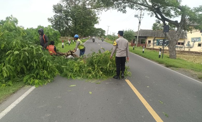 Polres Indramayu bergerak cepat mengevakuasi pohon tumbang yang