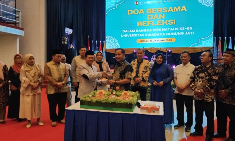 kacenews.id-CIREBON- Universitas Swadaya Gunung Jati (UGJ) Cirebon melaksanakan acara puncak peringatan Dies Natalis ke-65 dengan penuh khidmat dan meriah, di Auditorium Kampus I UGJ, Jumat (16/1/2026).