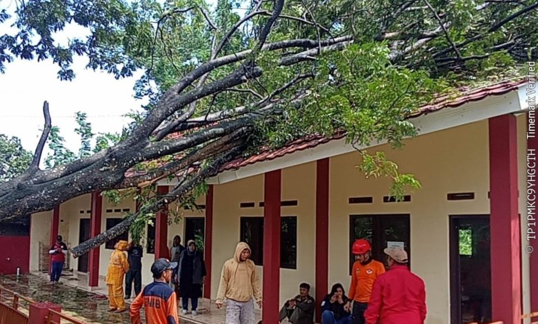 dengan tinggi 15 meter dan diameter 50 sentimeter roboh menimpa bagian atap kelas.