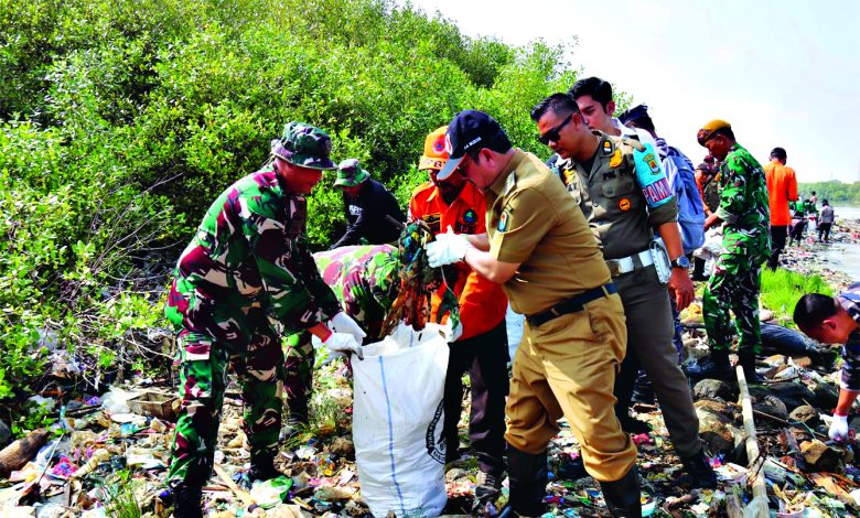 kacenews.id-CIREBON-ANGIN laut berembus pelan di Pantai Baro, Kecamatan Gebang. Di antara debur ombak dan hamparan pasir, ratusan orang memunguti sampah plastik yang tersangkut di bibir pantai. Ada seragam loreng TNI, pakaian dinas kepolisian, seragam pelajar, hingga warga dengan topi caping. Mereka datang dengan satu tujuan yakni membersihkan pantai yang selama ini menjadi saksi tumpukan sampah kiriman.