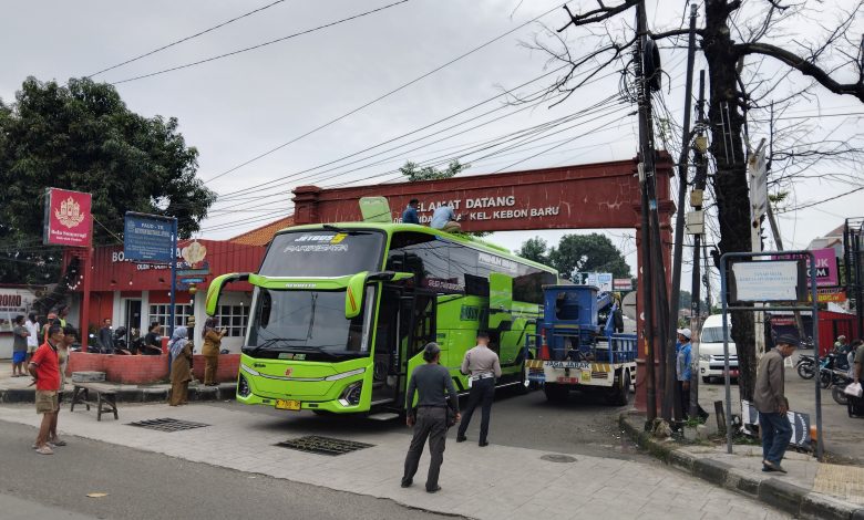 Bus DPRD Pati Jawa Tengah Tersangkut Gapura Tanda Barat, Jalan ke Stasiun Cirebon Lumpuh Tiga Jam