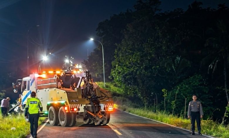 Menurutnya, kondisi jalan di lokasi kejadian menurun dan sedikit menikung ke kiri. Saat itu, pengemudi diduga mencoba mendahului kendaraan lain namun kehilangan kendali.