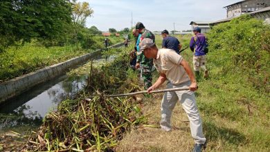 Antisipasi Banjir Musim Penghujan, Forkopimcam Losarang Gotong Royong Bersihkan Eceng Gondok