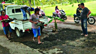 Tak Kunjung Diperbaiki, Warga Cirebon Timur Tanam Pohon di Ruas Sindanglaut–Ciawigajah