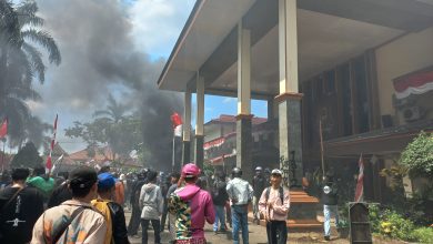 Tak Dijaga Polisi, Ribuan Demostrak Bakar Pos Penjagaan dan Rusak Kantor DPRD Kabupaten Cirebon